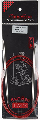 ChiaoGoo 60-Inch Red Lace Stainless Steel Circular Knitting Needles, 7/4.5mm
