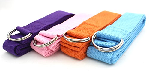 Set of 4 - ZICOME Fitness Exercise 6 Foot Yoga Strap - Perfect for Stretching, Holding Poses, Improving Flexibility, and Physical Therapy (4 Colors)
