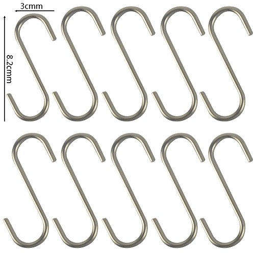 S Hooks, BeiLan 10pcs Stainless Steel S Hooks Hanging Hooks for kitchen & Gardening Installation Hardware Designed for Anywhere (S Hooks)