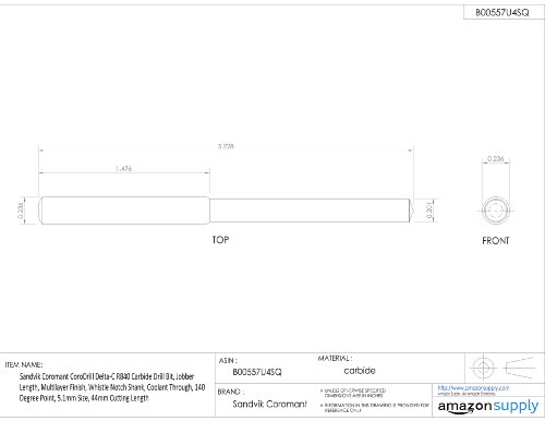 - Title : Sandvik Coromant CoroDrill Delta-C R840 Carbide Drill Bit, Jobber Length, Multilayer Finish, Whistle Notch Shank, Coolant Through, 140 Degree Point, 5.1mm Size, 44mm Cutting Length
