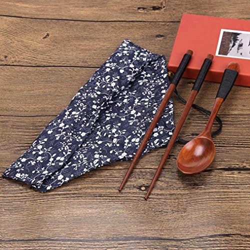 -. Title : DZT1968 Portable Wooden Chopsticks Spoon Tableware Set Vintage + Blue Bag