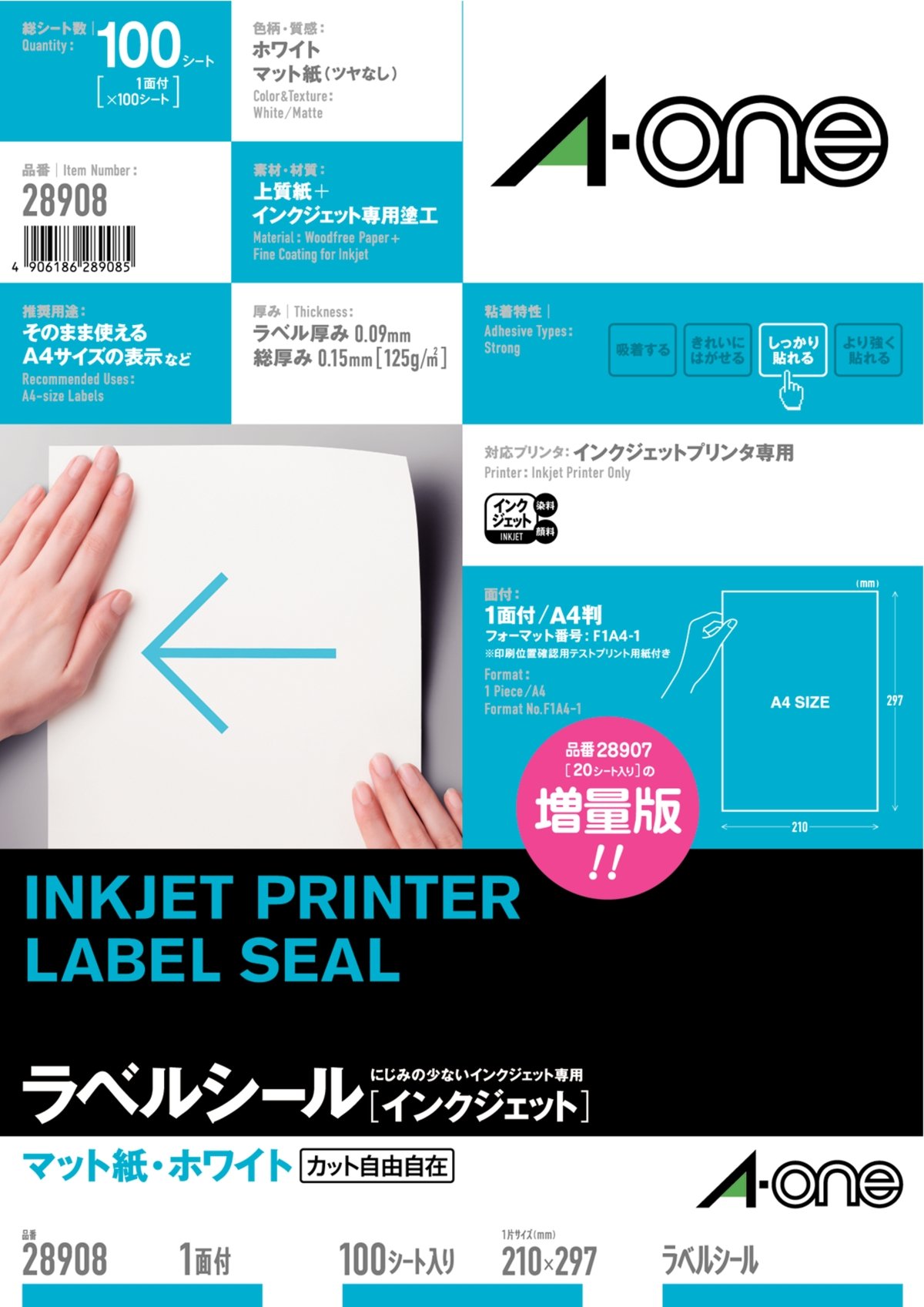 Uncut sheet 100 28908 A4 1 face-One (A-one) label seal [inkjet] Matt White paper (japan import)