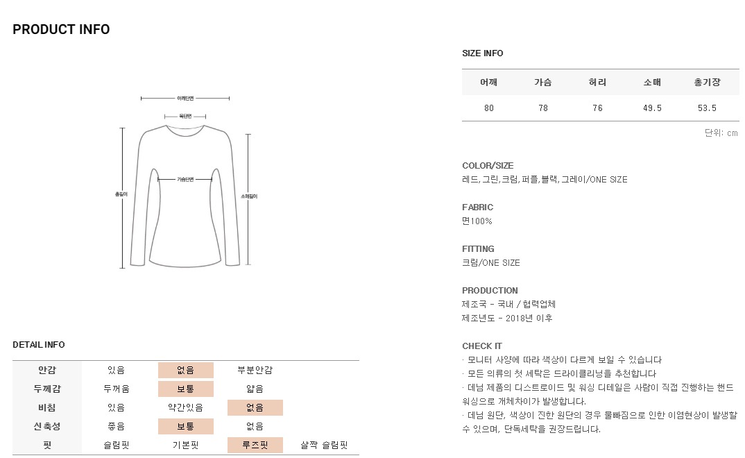 루즈한 핏으로 사이즈 구애없이 편안하게 착용가능해요