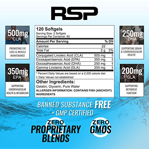 RSP LeanOmega - 2-In-1 Fish Oil Fat Burner, Daily CLA Omega 3 Capsules for Weight Loss, Joint Health and Better Immune Function, 120 Softgels