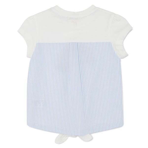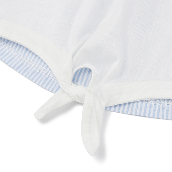 허리에 리본을 묶어서 큐트한 룩을 연출 할 수 있는 여아 티셔츠입니다
