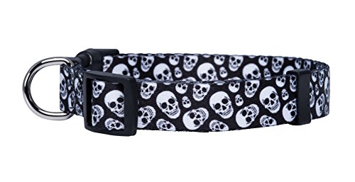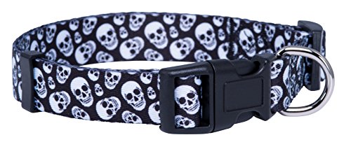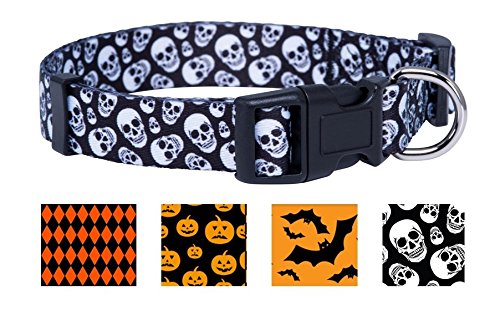 Studio : Native Pup Publisher : Native Pup Binding : Misc. Product Description These Halloween Dog Collars will look great on your Spooky Pup! This collar has the following features: Easily adjusted to fit most dog breeds Colorful repeating bat and witch design Durable polyester Metal D-Ring and adjuster To accurately get your dogs neck size, use cloth measuring tape or string and measure around your dog's neck. Add two additional inches and you will have your dogs neck size! Native Pup Collar Neck Size Common Dog Breeds Extra Small 7-10 Inches Chihuahua, Terriers, Shih Tzu Small 11-15 inches Beagle, Cocker Spaniel Medium 14-20 inches Dalmatian, Boxer, Lab, Husky 0