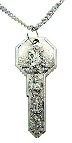 Saint Christopher & St Anthony Key Pendant 2 Inch Long with Chain