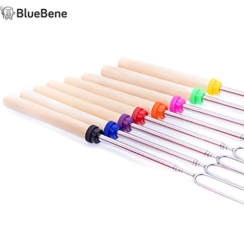 ? HIGHEST QUALITY with rating 4.8/5. Sturdier STAINLESS STEEL forks with Wooden Handle for Comfortable and Safe Roasting Experience. EASY CLEANING & BPA APPROVED. Perfect for use with 8 different colors for no quarrels between children. "They are still very durable and not flimsy when extended" said Mary