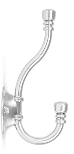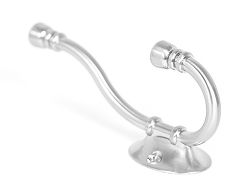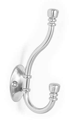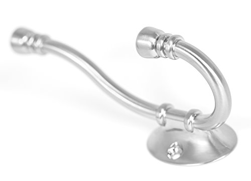 BirdRock Home Classic Wall Mounted Robe & Towel Hooks | 2 Pack | Dual Hook | Large | Brushed Nickel Towel Robe Hat Coat Hook