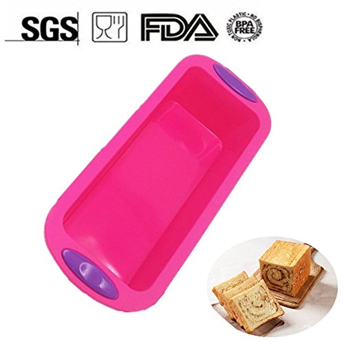 Rectangle Silicone Cake Bread Mold | Beautiful Loaf Pan with Handle Grips - 8.6 x 3.9 x 2.3 Inch | 100% Pure Food Grade Nonstick Professional Silicone Bread and Cake Trays (Pink)