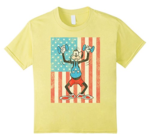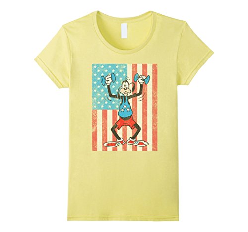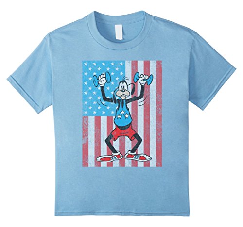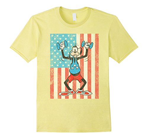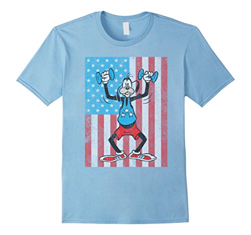 Goofy Pumping Iron Americana Graphic Tee Officially Licensed by Disney Lightweight, Classic fit, Double-needle sleeve and bottom hem Brand : Disney Package Dimensions(LxWxH) : 39x31x3cm ; 136 g