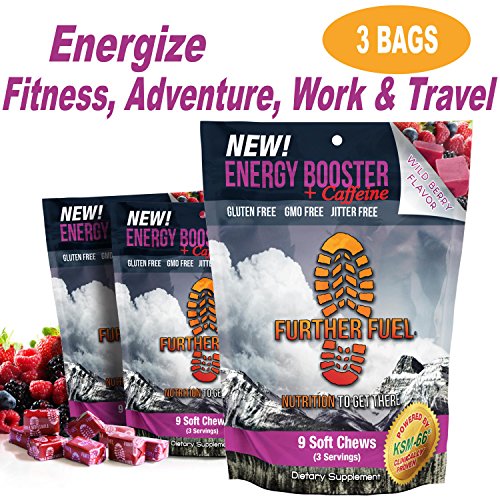 -. Title : Natural Energy Booster +Caffeine Soft Chews Sport Nutrition Boost with Vitamin B12 and Natural KSM-66 Ashwagandha. Natural Stress Relief. FURTHER FUEL 3 Convenient travel bags