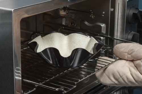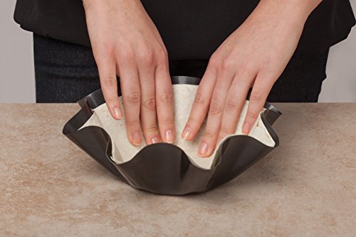 HIC's Non-Stick Tortilla Bowl Makers transform ordinary tortilla wraps into crispy, low-fat tortilla bowls and taco bowls for flavorful, lower calorie, low fat, healthy meals without frying. Edible salad bowls make any meal fun and festive. These professional-quality carbon steel pans with premium non-stick coating are PFOA and BPA free. They bake evenly in the oven for a crispy, all-over golden brown and work perfectly for all types of tortillas, including flour tortillas, whole grain, corn, low carb, gluten free and homemade tortillas. Foods won't stick and cleanup is a breeze. Making a tostada Mexican salad, taco salad recipe, vegetarian recipes or healthy snacks has never been easier. Heat oven to 350-degrees Fahrenheit. Coat the pans inside lightly with cooking spray. Press large tortilla wraps (10-inches or larger) into the pans, making sure to press them into the curves. Bake for 8-10 minutes or until golden brown. Remove from the oven and allow to cool. Place the crispy bowls on serving plates and pile high with lettuce and proteins, like beans, cooked taco meat, grilled chicken or fish, and taco toppings, like tomatoes, onions, guacamole, salsa, sour cream, and cheese. Use them to serve chili, Mexican lasagna, enchilada casserole, party dips, salsa, fried ice cream, and more. The pans nest for easy, compact storage. A great addition to cooking accessories for an effortless indoor and outdoor lifestyle. Made from professional-quality carbon steel with a premium non-stick coating, HIC's Tortilla Bowl Makers are heat safe (to 430-degrees Fahrenheit) and PFOA and BPA free. Foods won't stick and they're dishwasher safe for easy cleanup. Includes 2 large (8.5-inches x 2.5-inches) fluted tortilla bowl baking pans with instructions and recipe. Always use wooden or nylon kitchen tools. Never cut food in the pan. Never use metal utensils or abrasive cleansers, as this may cause damage.Feature