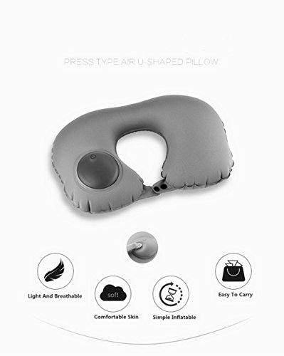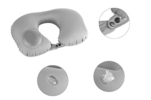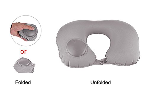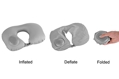Travel Inflatable Neck Pillow Perfect for the Airplane, Car, Bus or Train (Gray)