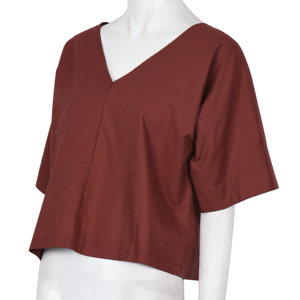 summer Women t shrt Loose Pullover Shirt Half Sleeve Tops Shirt Blouse female V-neck loose Half sleeve cotton shirt Solid Shirt
