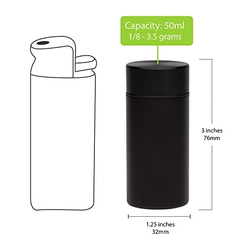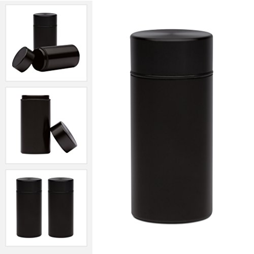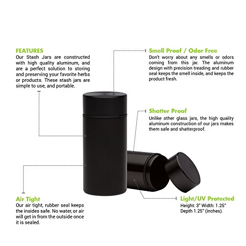 Stash Jar - Airtight Smell Proof Aluminum Herb Container Waterproof, Scent Lock Odor Protection. Beautiful Discreet Metal Design. Store Herbs and Spices Securely. Perfect Size for Travel … (1, Black)
