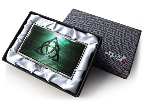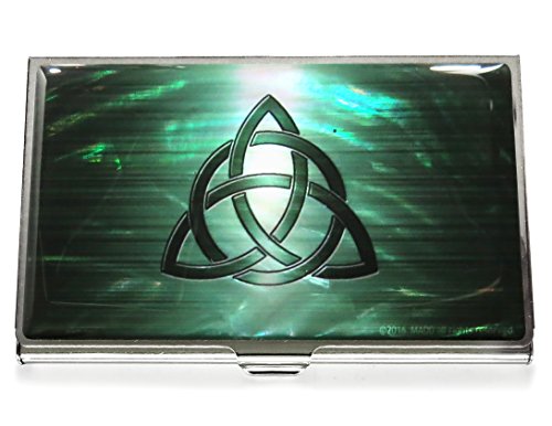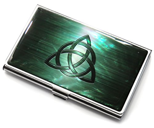 Business Credit Card Case Id Holder Metal Travel Wallet Mother of Pearl Celtic Knot (Green)