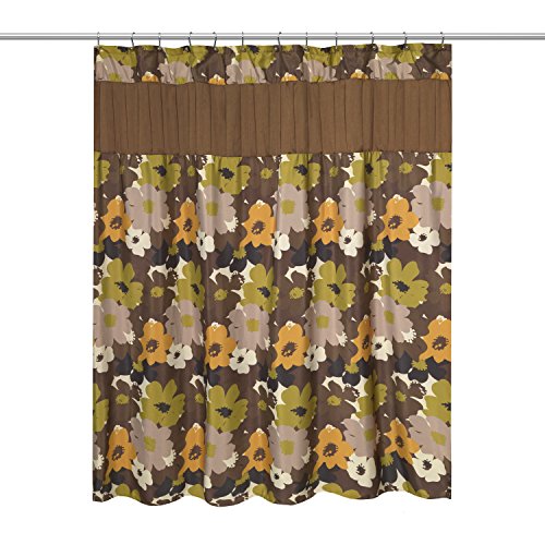 Popular Home The Floral Bouquet Collection Fabric Shower Curtain, Chocolate