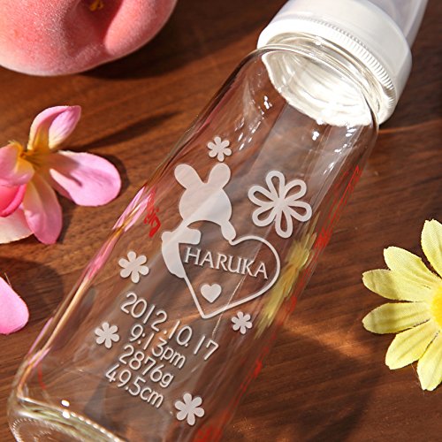 -. Feature : シンプルな贈り物じゃつまらない!赤ちゃんのお名前を刻んだ特別感が喜ばれるオンリーワンギフトです。 / 大量生産ギフトとは温もりが違い実用性のあるオーダーメイドの出産祝いギフトです。 / 赤ちゃんのお名前や出生情報が彫刻されているので使わなくなっても哺乳瓶の中に写真を入れて飾ることも出来ます。 / 0カ月から使える哺乳瓶(240mlガラス製)に彫刻いたします。 / 赤ちゃんの出生情報がわからなくてもご両親のお名前やメッセージが彫刻可能です。