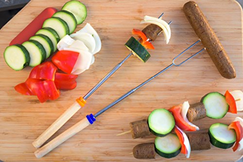 TooglBox - 4 Piece 32 Inch Marshmallow Roasting Stick - Telescoping Stainless Steel Cookware Set-Forks for Smores & Hot Dogs - BONUS 20 Bamboo skewers & Bag (4)