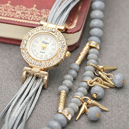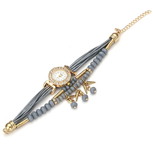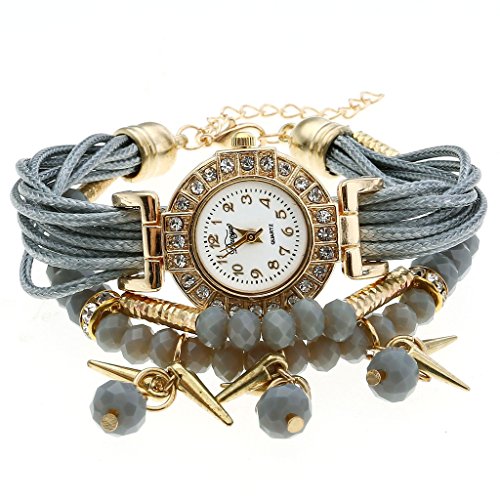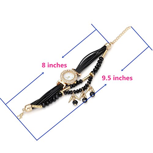 Top Plaza Ethnic Style Womens Wrap Around Watch Rhinestone Beaded Charm Layer Quartz Bracelet Watch