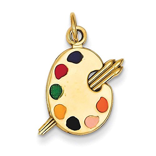 -. Title : 14k Yellow Gold Enameled Artist Palette Polished Charm Pendant 20mmx12mm