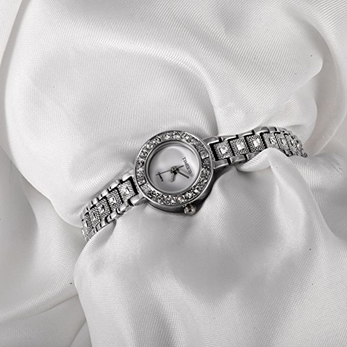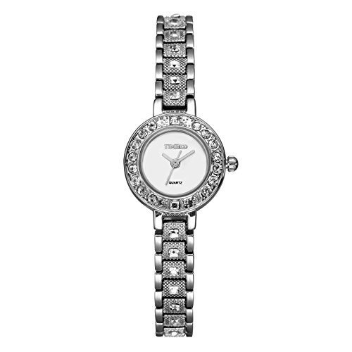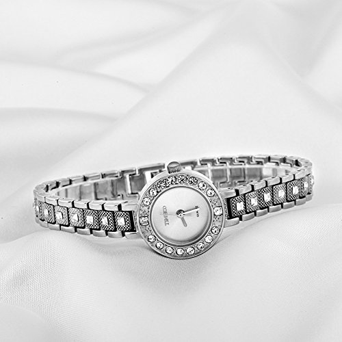 【Elegant Round】Shiny and beautiful round dial with a clean and white surface that gives you a clear view of the beat of time,the inner ring of the dial plate is made of elaborately cut glass which can break sunlight to all colors to set off the beauty of the diamonds in the outermost layer.