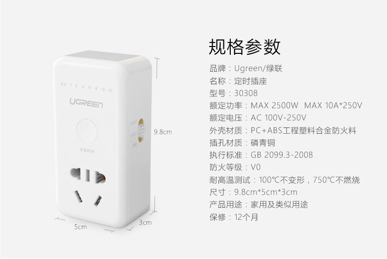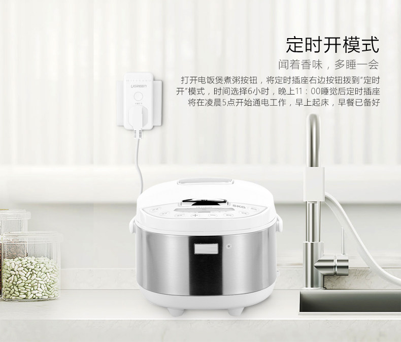 绿联智能定时插座厨房家用电器自动定时开关水泵电动车充电定时器