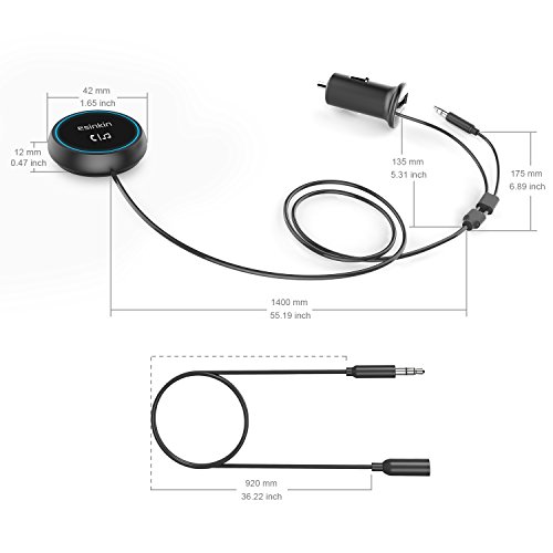 -. Feature : Hands-free: Provides hands-free solution for answering and receiving phone calls and streaming your music from smart phones while you are driving / Clear sound and perfect acoustics: Echo and noise cancellation technology supply clear call quality and high quality acoustics / USB car charger: This bluetooth car kit equipped with one port USB car charger to charge receiver and other device at the same time / Bluetooth 4.0 technology: Supports pairing with your bluetooth enable device, long wireless range up to 30 feet, fast and easy to use / Package: Bluetooth car audio receiver with USB car charger, Bluetooth car kit base,An extension cable, Instruction manual. 1 Year warranty.