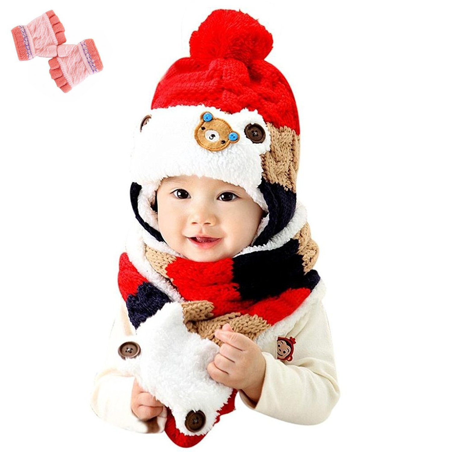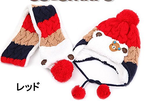 赤ちゃん 幼児 子供 服 ギフト 帽子 キャップ かわいい ボンボン 耳あて 耳カバー 付き ボア ニット帽 マフラー セット 男の子 女の子 兼用 防寒 防風 アウター ベビー キッズ