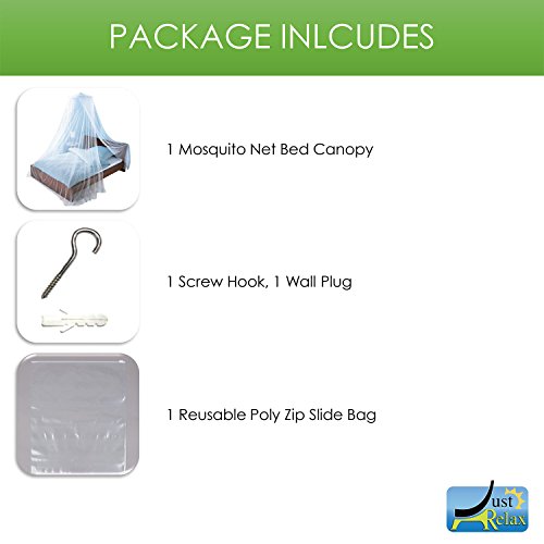 EXPERTLY CRAFTED AND PERFECTLY SIZED TO FIT YOUR NEEDS Just Relax has introduced their Elegant Canopy Set, the most elite mosquito net on Amazon. Our net is the BIGGEST and most spacious. Sold in 2 sizes so you may choose the canopy that better fits your needs. With measurements of Ring 25.6 inches, canopy height measures approximately: 10 Feet (120 Inches) and Diameter: 49.2 Feet (590.5 Inches) at the bottom.