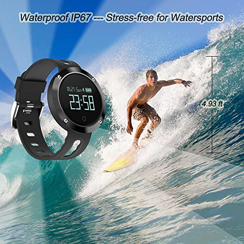 ♥120mAH Large Battery: standby time 25 days, continually working time 7 days, whenever and wherever recharges quickly with pc and usb port, premium waterproof ip 67 - pressure-free for surfing, swimming and other watersports, the wristband is not suitable for deep diving (briefly stay at depth above 4.92ft).