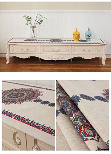 -. Feature : Retro cotton linen table cloth runner with personalized pattern design, can reveal your personal taste and highlight the home decoration / Durable cotton linen , texture clear, well-distributed and fine workmanship , by using heat dye sublimation technique make the P.R.Inting pattern long lasting effect , no fade / Spot clean or dry clean in cold water with mild detergent , lay flat or hang to dry. Do not twist, wring, squeeze or tumble dry. About the fold and wrinkles occurs in shipment, just simple use steam iron to get wrinkles away / Approx. 20*79 Inches (W*L) , sizes are hand measured, may have a 1 inches deviation / Best choice for home or kitchen decoration and also would complement any occasion nicely. Also a good choice to send it as a birthday, holiday or housewarming gift