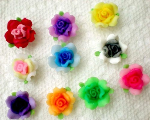 Beading Station 20-Piece Handmade Leafy Clay Rose Flower Beads, 15mm, Multicolor