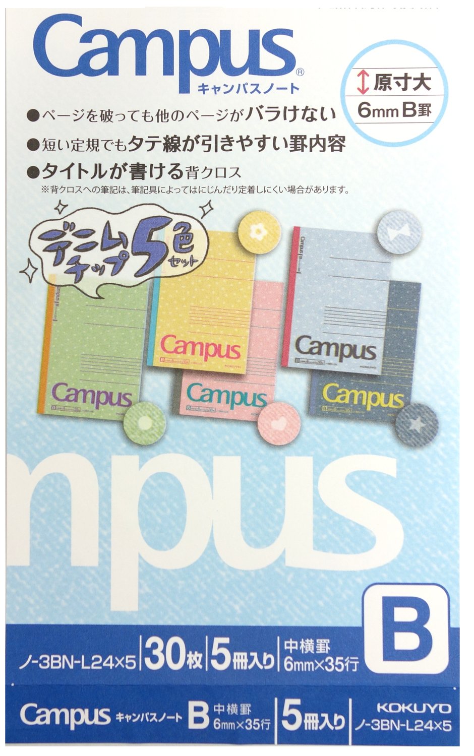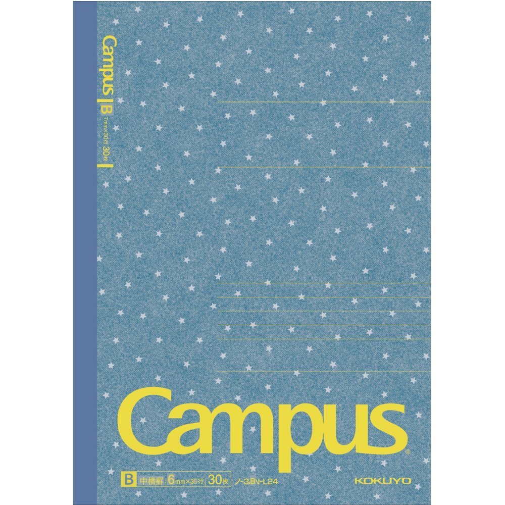 Kokuyo Campus notebook B5 denim chip pattern B ruled 30 sheets × 5 books semi B5 Roh -3BN-L24X5