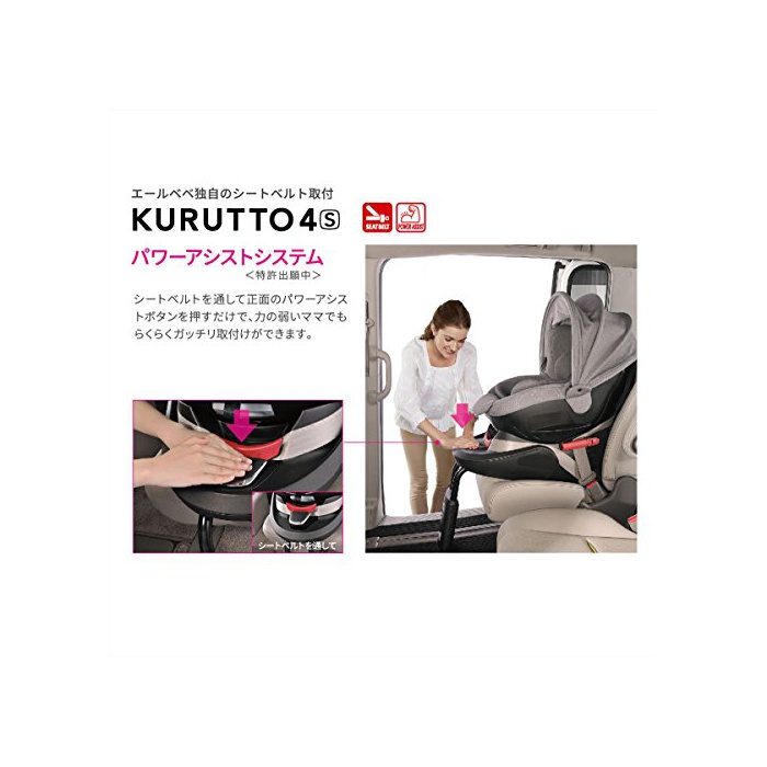 원본상품명: エルベベ 『日本製安心トリプル保付』回型チャイルドシト クルット4sグランス 【シトベルト取付】 新生から4用(360度 サイレントタン/ふわふわヘッドクッション/ワイドサンシェド