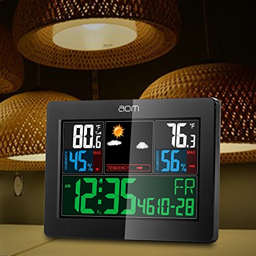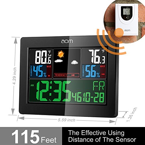 5.59x4.29 inch full wireless color weather station with 5 forecast icons: Sunny, Party Sunny , Cloudy, Rainy, Stormy