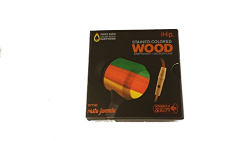 -. Title : iHip Stained Colored Wood Earbud Headphones Rasta - Jamin Earphones + Microphone
