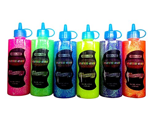 6 Color Glitter Glue Set (4oz - 120 ml Bottles) NEON Colors - Pink, Green, Blue, Yellow, Purple, and Orange