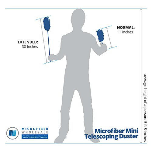 Great For Hard To Reach Spots – our duster extends up to 30 inches, so you no longer have to get on your tip toes or crouch down when dusting. It also has a large foam core ensuring a snug fit for the microfiber coat.