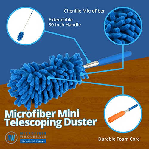 Microfiber Mini Telescoping Duster - 2 Pack (Blue) | 30 inch Extendable Handle | Machine Washable | No Fraying