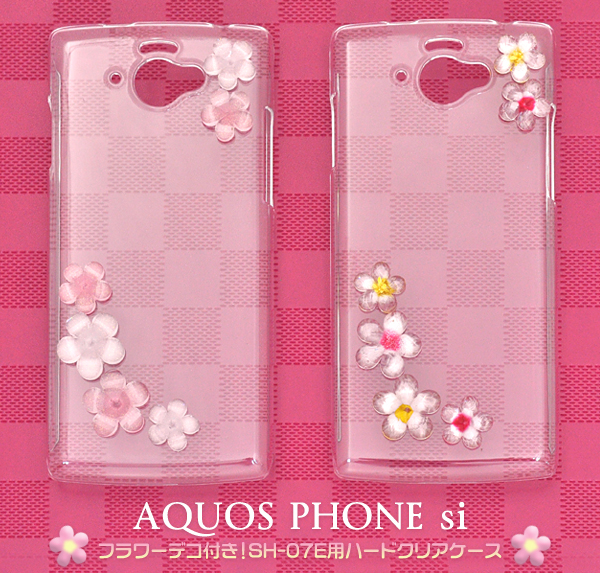 | キュートなフラワーデコ付きのAQUOS PHONE si SH-07E用ハードクリアケース |