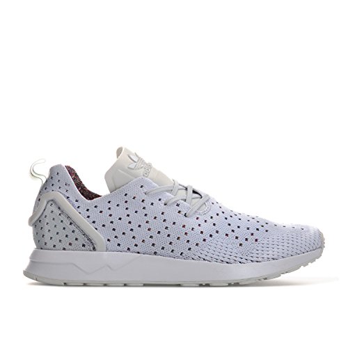 Studio : adidas Originals Publisher : adidas Originals Binding : Apparel Product Description Mens adidas Originals ZX Flux Adv Asymmetrical Primeknit Trainers in crystal white.- The iconic ZX trainer updated with a lightweight and breathable Primeknit upper.- Breathable and flexible adidas Primeknit upper for an enhanced fit featuring multi-coloured yarn detail.- Football boot-inspired asymmetrical lacing.- Comfortable textile lining.- Clear TPU heel cage. - Injected EVA midsole for lightweight cushioning.- Webbing heel loop strap.- Trefoil branding to tongue.- Rubber outsole.- Textile and synthetic upper, Textile lining, Synthetic sole.- Ref: S76369 0