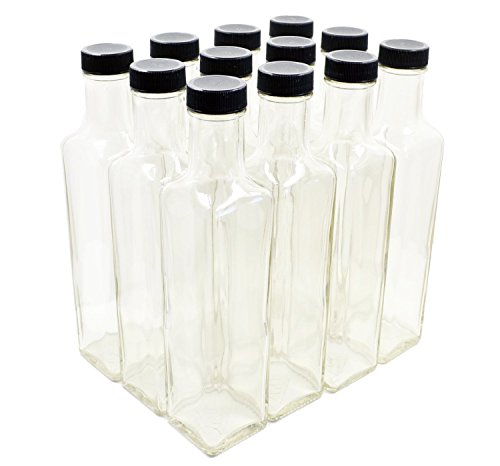 - Case of 12 Beautiful, Clear Glass Square Bottles
