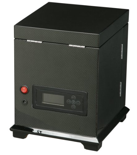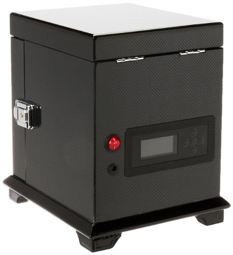 -. Feature : Piano finish carbon fiber exterior and rich black leather interior / LED lighting inside showcases your timepiece beautifully / Universal mount fits mens and women's watches / Small compartment on top for various jewelry / 110/240V Adapter Supplied/ 1 Year Manufacturer Warranty