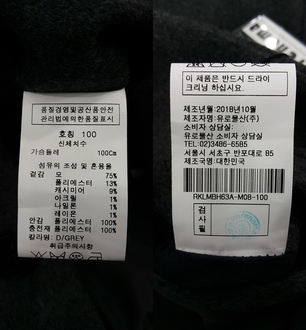 모 75% 폴리에스터 13% 캐시미어 9% 아크릴 1% 나일론 1% 레이온 1%