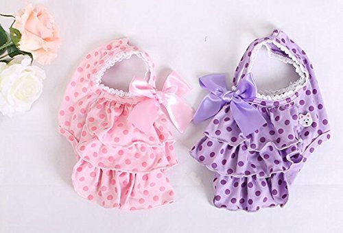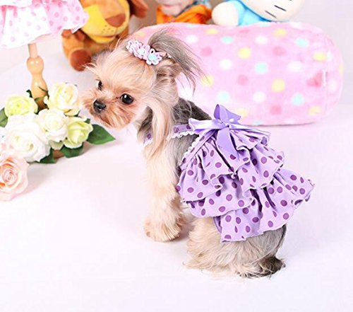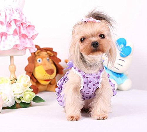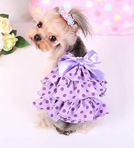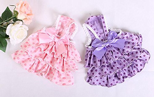 Title : Jooyi® Pet Dog Puppy Summer Wedding Party Dress Clothes, Fancy Ribbon Flower Skirt, Cute polka Dot Princess Apparel (M, Purple)