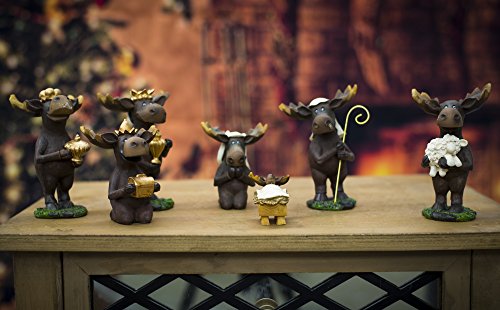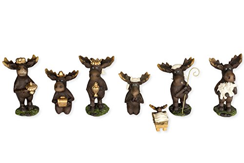 - Set includes 3 wisemen, Mary, Joseph, Baby Jesus in Manger and Shepherd as Moose Figures
