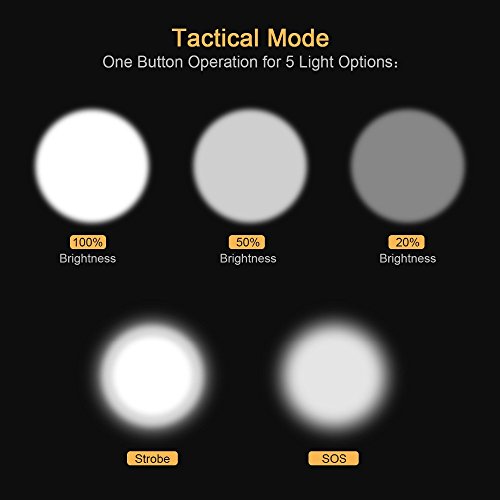 FIVE LIGHT MODES: The led flashlight torch set for high/medium/low/strobe/SOS, with ON/OFF button, easy to operate and you will be ready for anything that comes your way