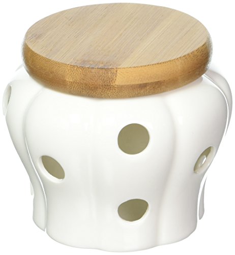 White Stoneware Garlic Keeper with Bamboo Lid and 12 Air Vent